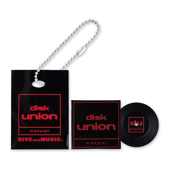 With the charm connected with the record bag, sleeve and mini Vinyl.